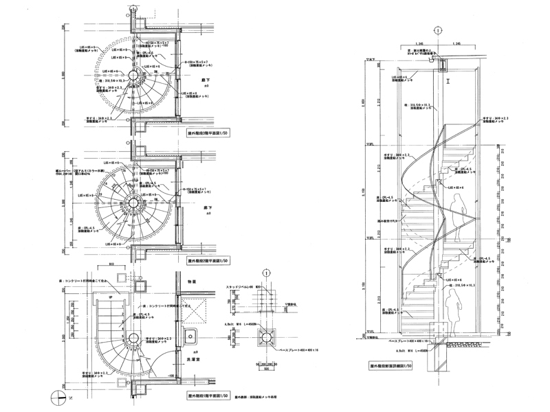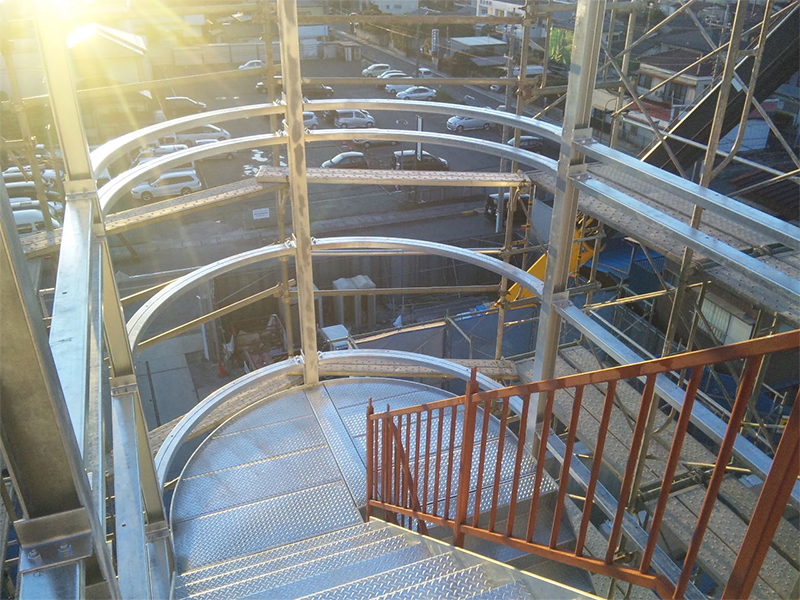 実績例 ~現場組立式らせん階段(溶融亜鉛メッキ)~